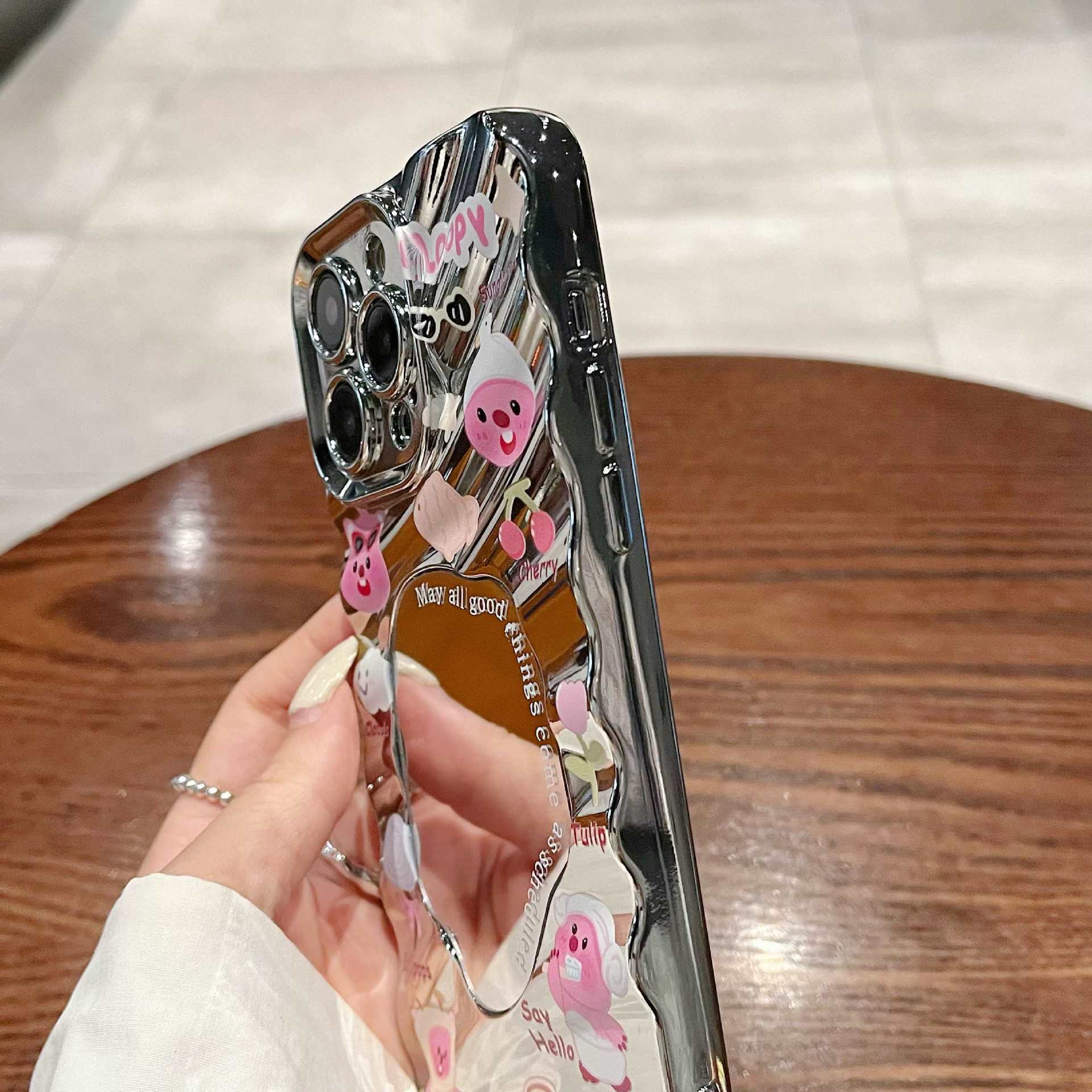 Wave mirror for iphone16 electroplated mobile phone case xr cute beaver apple 13 all - inclusive tpu protective case 7 - Shengyao Chuangqi (HK) International Limited
